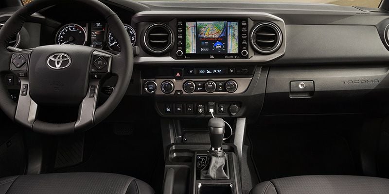 Advanced driver assistance features are also integrated into every Tacoma trim this year. Take advantage of safety equipment that includes adaptive cruise control, automatic high-beam headlights, forward automatic emergency braking, forward collision and lane departure warning, pedestrian detection, and a rearview camera. Few competitors offer this level of high-tech safety features across the board. When you upgrade to higher Tacoma trims, you can enjoy added options like rear parking sensors, a surround-view monitor, rear cross-traffic alert, blind-spot monitoring, and even a multi-terrain monitor (a class exclusive) in the TRD Pro.