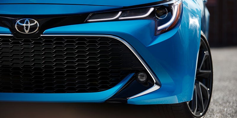 The highest available trim on this year's Corolla Hatchback is the XSE. The rear bumper features several accents, such as a black rub strip and chrome inserts. The grille is black with a chrome surround.