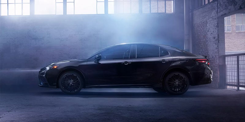 With the Camry, you can choose from attractive paint options such as Supersonic Red, Blueprint, Predawn Gray Mica, and Ruby Flare Pearl. Two-tone options with a black roof are also available. The Camry comes in five trim levels: the LE, SE, XLE, XSE, and TRD. A hybrid model is offered on all trims except for the TRD. In addition, a Nightshade Edition trim, which comes with 18-inch wheels, unique badging, and blacked-out features, is available on the SE trim.