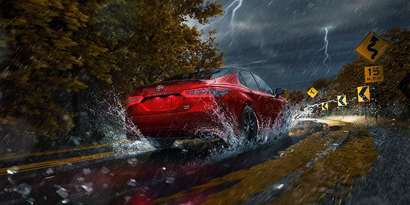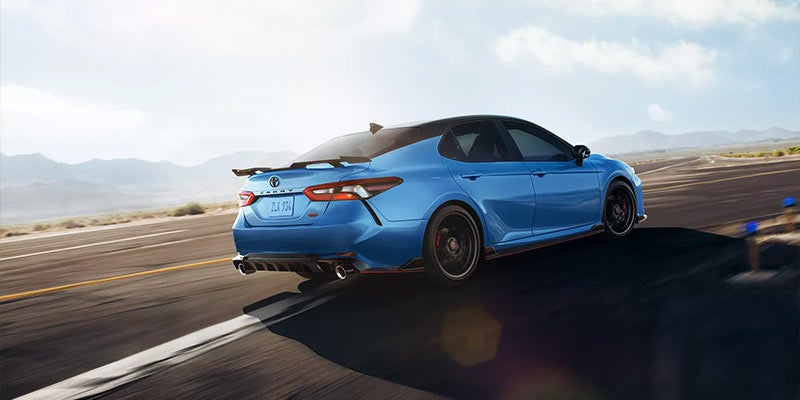 The XLE trim adds side mirrors with blind-spot indicators and handles with touch sensors, while the XSE trim comes with 19-inch black alloy wheels and a dual exhaust with quad chrome steel tips. The sporty TRD trim boasts a Gloss Black front splitter, a Gloss Black rear spoiler, a TRD cat-back dual exhaust with polished stainless-steel tips, and a rear diffuser with red pinstriping.