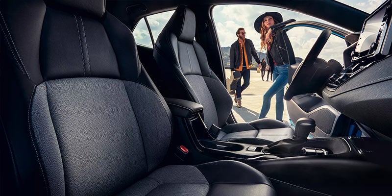 The cabin of the Corolla hatchback is comfortable and fitted with quality materials. Supportive seats are provided for up to five passengers, while the rear cargo area offers 17.8 cubic feet of space. For those times that you need more cargo space, you can fold the rear seats down.