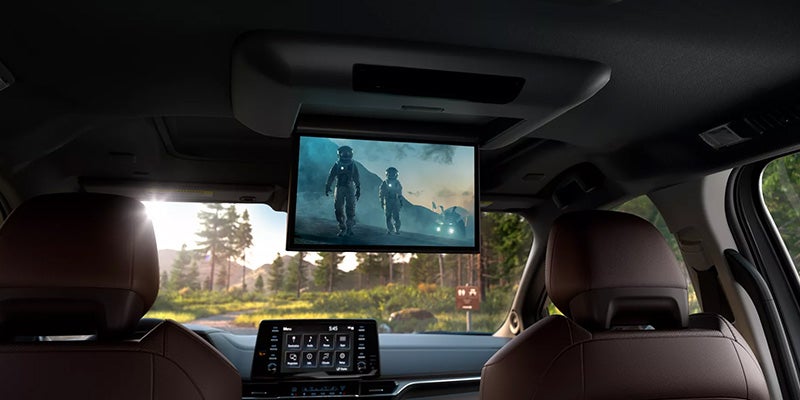 If you're interested in infotainment, the Toyota Sienna has a 9-inch infotainment touch screen on the dashboard. The touch screen is compatible with Apple CarPlay and Android Auto, as well as a six-speaker audio system. If you want to add more infotainment tech to the minivan, upgrade to a higher trim level and receive push-button start, keyless entry, power-adjustable seats, a wireless charging pad, and an eight-speaker audio system.