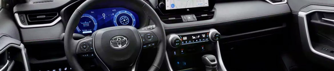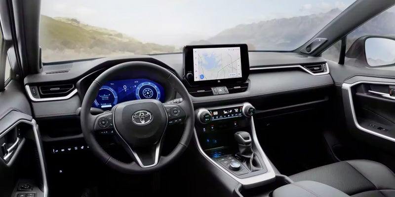 When you open the door to the 2023 Toyota RAV4 Prime, you'll be greeted by a comfortable and convenient cabin. The SE has keyless entry and start, dual-zone automatic climate control, heated front seats, satellite radio, five USB ports, a Wi-Fi hotspot, a six-speaker sound system, and an 8.0-inch touchscreen with wireless Apple CarPlay and Android Auto.