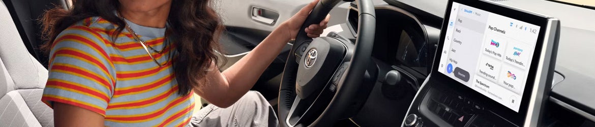The 2025 Corolla Hybrid feels surprisingly roomy. It fits five adults comfortably, with 42 inches of front legroom and 34.8 inches in back. The trunk offers 13.1 cubic feet of cargo space. LE and SE trim levels feature an 8-inch Toyota Audio Multimedia touchscreen, while XLE and SE with Premium package upgrade to a 10.5-inch display. Wireless Apple CarPlay and Android Auto compatibility is standard.