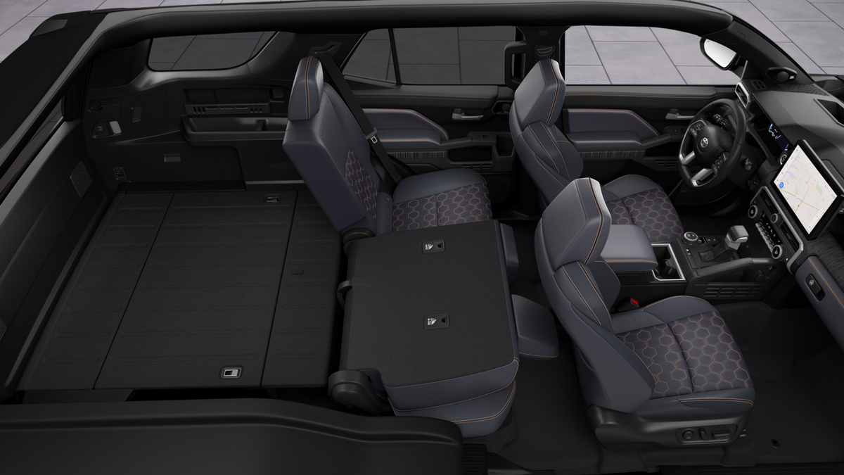 - 60/40 split, heated, reclining and tumble-folding second-row seat with center armrest and cup holders