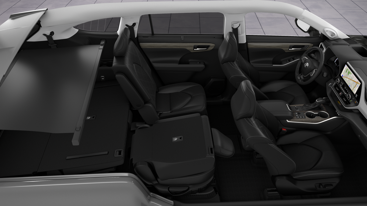 - 7-passenger seating with second-row fold-down captain's chairs and fold-down inboard armrests, adjustable headrests and two cup holders mounted on the floor; and 60/40 split, fold-flat third-row seats with sliding headrests and recline function