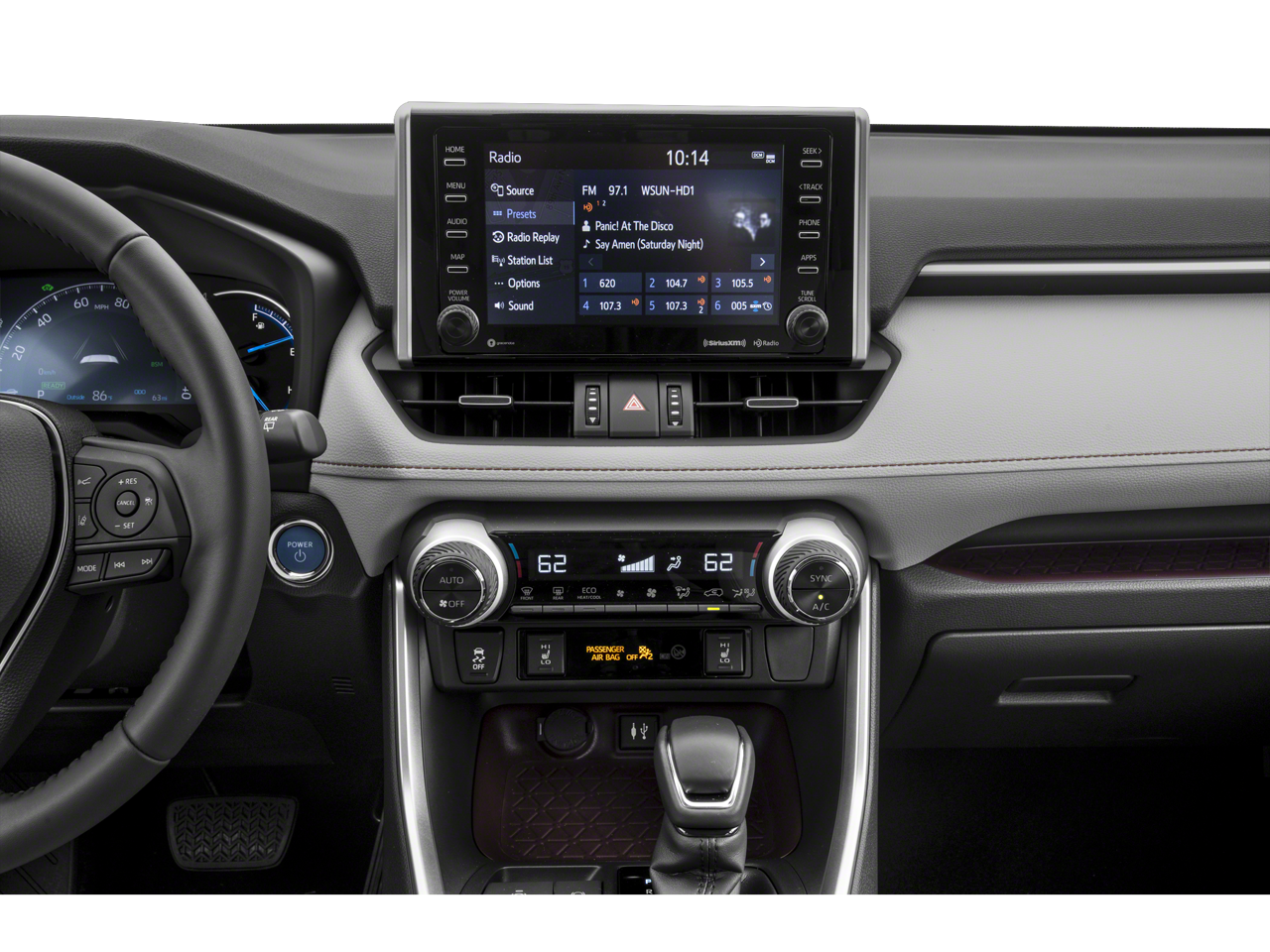 2.5L 4-Cylinder, 4-Wheel Disc Brakes, 6 Speakers, ABS brakes, Air Conditioning, Alloy wheels, AM/FM radio: SiriusXM, Apple CarPlay, Auto High-beam Headlights, Auto-dimming Rear-View mirror, Automatic temperature control, Axle Ratio: TBD, Brake assist, Bumpers: body-color, Delay-off headlights, Driver door bin, Driver vanity mirror, Dual front impact airbags, Dual front side impact airbags, Electronic Stability Control, Emergency communication system: Safety Connect, Four wheel independent suspension, Front anti-roll bar, Front Bucket Seats, Front Center Armrest, Front dual zone A/C, Front fog lights, Front reading lights, Fully automatic headlights, Garage door transmitter: HomeLink, Heated door mirrors, Heated Front Seats, Heated front seats, Illuminated entry, Knee airbag, Leather Shift Knob, Low tire pressure warning, Memory seat, Navigation System, Occupant sensing airbag, Outside temperature display, Overhead airbag, Overhead console, Panic alarm, Passenger door bin, Passenger vanity mirror, Power door mirrors, Power driver seat, Power Liftgate, Power moonroof, Power steering, Power windows, Radio data system, Radio: Entune 3.0 Premium Audio w/Navigation, Rear anti-roll bar, Rear seat center armrest, Rear window defroster, Rear window wiper, Remote keyless entry, Roof rack: rails only, Security system, SofTex Seat Trim, Speed control, Speed-sensing steering, Split folding rear seat, Spoiler, Steering wheel mounted audio controls, Telescoping steering wheel, Tilt steering wheel, Traction control, Trip computer, Turn signal indicator mirrors, Variably intermittent wipers, and Wheels: 18 x 7.0J Chrome-Finished Aluminum Alloy.