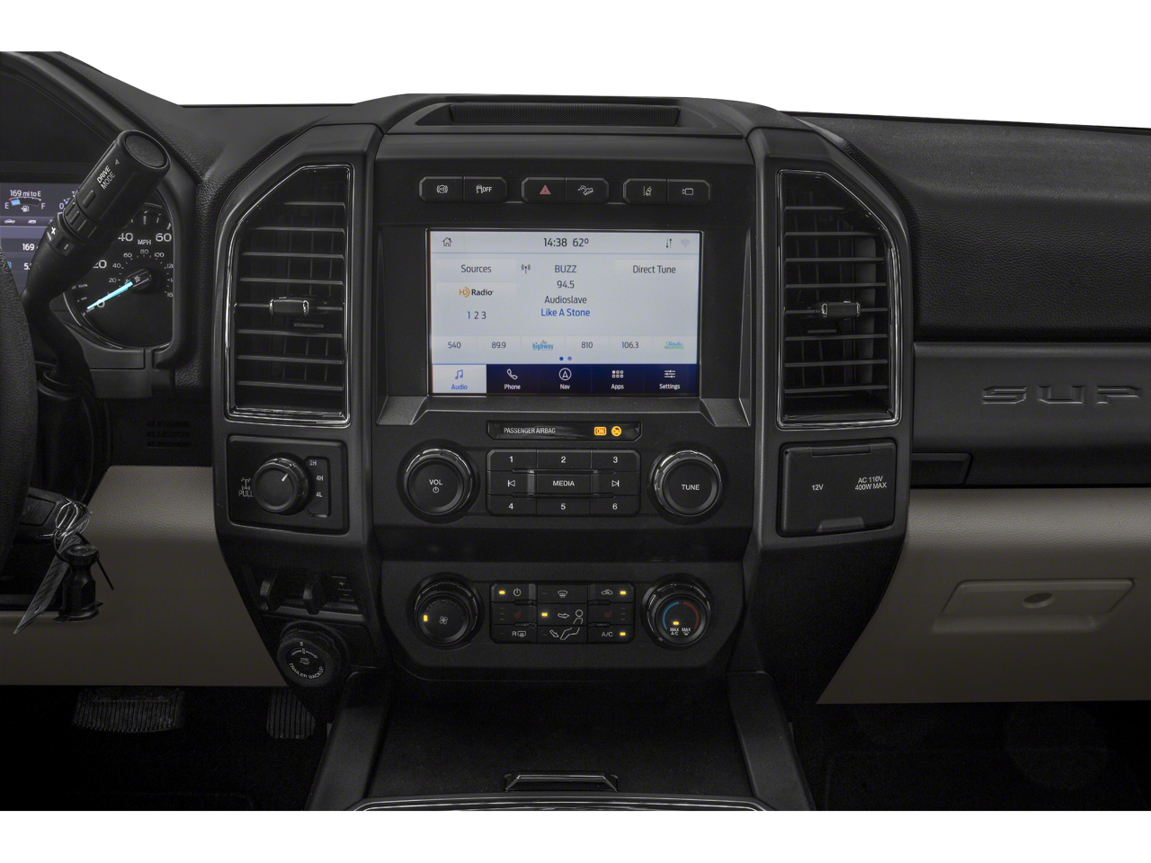 GVWR: 10,000 lb Payload Package, Order Code 603A, XLT Value Package (8-Way Power Driver's Seat, Autolock/Auto Unlock, Halogen Fog Lamps, Reverse Sensing System, and SecuriCode Driver's Side Keyless Entry Keypad), 4WD, 110V/400W Outlet, 4-Wheel Disc Brakes, 7 Speakers, ABS brakes, Air Conditioning, Alloy wheels, AM/FM radio: SiriusXM, Auto High-beam Headlights, Brake assist, Bumpers: chrome, Cloth 40/20/40 Split Bench Seat, Compass, Delay-off headlights, Driver door bin, Driver vanity mirror, Dual front impact airbags, Dual front side impact airbags, Electronic Stability Control, Emergency communication system: SYNC 3 911 Assist, Exterior Parking Camera Rear, Fixed Rear-Window w/Defrost, Front anti-roll bar, Front Center Armrest w/Storage, Front reading lights, Fully automatic headlights, Heated door mirrors, Illuminated entry, Lane-Keeping Alert, LED Box Lighting, LED Roof Clearance Lights, Low tire pressure warning, Outside temperature display, Overhead airbag, Overhead console, Panic alarm, Passenger door bin, Passenger vanity mirror, Power door mirrors, Power steering, Power windows, Power-Sliding Rear-Window w/Defrost, PowerScope Trailer Tow Mirrors w/Heat, Privacy Glass, Pro Trailer Backup Assist, Radio data system, Radio: AM/FM Stereo/MP3 Player, Rear reading lights, Rear step bumper, Remote keyless entry, Remote Start System, Security system, SiriusXM Radio, Speed control, Split folding rear seat, Steering wheel mounted audio controls, SYNC 3 Communications & Entertainment System, Tachometer, Tailgate Step & Handle, Telescoping steering wheel, Tilt steering wheel, Traction control, Trip computer, Turn signal indicator mirrors, Ultimate Trailer Tow Camera System, Upfitter Switches (6), Variably intermittent wipers, Voice-Activated Navigation, and Wheels: 18 Sparkle Silver Painted Cast Aluminum.