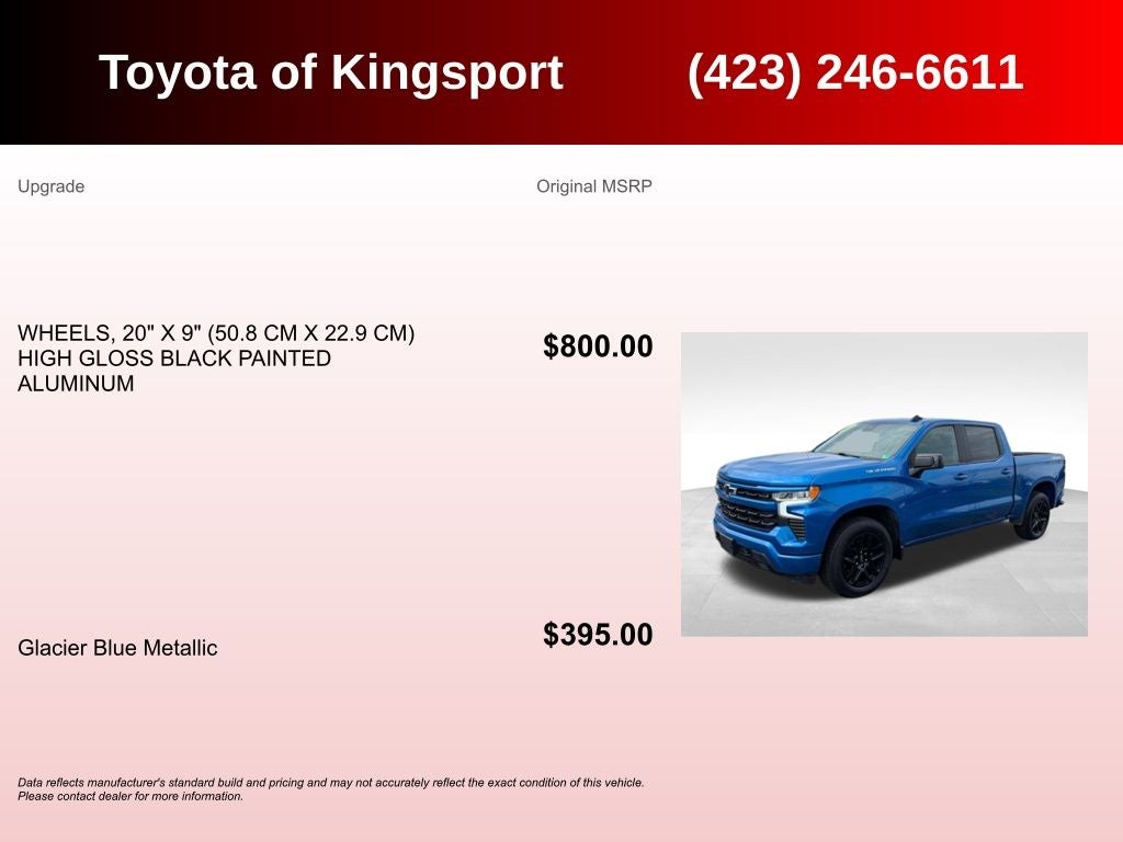 Used vehicle pricing plus tax includes applicable rebates and incentives. Price may include dealer installed options. Price does not include cost of optional equipment chosen by the purchaser. All rebates and incentives are from Toyota or Toyota Financial. Toyota Credit rebate may be included in price. Financing through Toyota Motor Credit may be required for all rebates/incentives to apply. Rebates and incentives are handled on an individual basis and every customer may not qualify for every rebate. Examples may include rebates based on fuel type various packages trade in assistance or other stipulations. All rebates issued to Dealer and subject to change and could affect final price. While every reasonable effort is made to ensure the accuracy of this information we are not responsible for any errors or omissions contained on these pages. Please verify any information in question with Toyota of Kingsport.