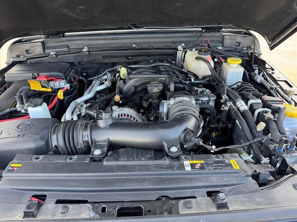 Quick Order Package 24G, Trailer Tow Package (240 Amp Alternator, Class IV Receiver Hitch, Heavy-Duty Engine Cooling, and Trailer Hitch Zoom), 110 MPH Vehicle Max Speed Calibration, 3.73 Rear Axle Ratio, 4-Wheel Disc Brakes, 9 Speakers, ABS brakes, Air Conditioning, Alloy wheels, AM/FM radio: SiriusXM, Anti-Spin Differential Rear Axle, Apple CarPlay/Android Auto, Auto-dimming Rear-View mirror, Automatic temperature control, Black 3-Piece Hard Top, Brake assist, Compass, Corning Gorilla Glass, Delay-off headlights, Driver door bin, Driver vanity mirror, Dual front impact airbags, Dual front side impact airbags, Electronic Stability Control, Emergency communication system: SiriusXM Guardian, Freedom Panel Storage Bag, Front anti-roll bar, Front Bucket Seats, Front Center Armrest w/Storage, Front dual zone A/C, Front fog lights, Front License Plate Bracket, Front reading lights, Fully automatic headlights, Garage door transmitter, Heated door mirrors, Illuminated entry, Integrated roll-over protection, Leather steering wheel, Low tire pressure warning, MOPAR All-Weather Slush Mats, MOPAR Cold Air Intake System, MOPAR Hardtop Headliner, MOPAR Spray In Bedliner, Navigation System, Normal Duty Plus Suspension, Occupant sensing airbag, Outside temperature display, Overland Cloth Bucket Seats, Panic alarm, ParkView Rear Back-Up Camera, Passenger door bin, Passenger vanity mirror, Power door mirrors, Power steering, Power windows, Radio data system, Radio: Uconnect 4C Nav w/8.4 Display, Rear anti-roll bar, Rear reading lights, Rear Sliding Window, Rear Window Defroster, Remote keyless entry, Security system, Speed control, Split folding rear seat, Steering wheel mounted audio controls, Tachometer, Telescoping steering wheel, Tilt steering wheel, Traction control, Trip computer, Variably intermittent wipers, Voltmeter, and Wheels: 18 x 7.5 Granite Crystal Aluminum.