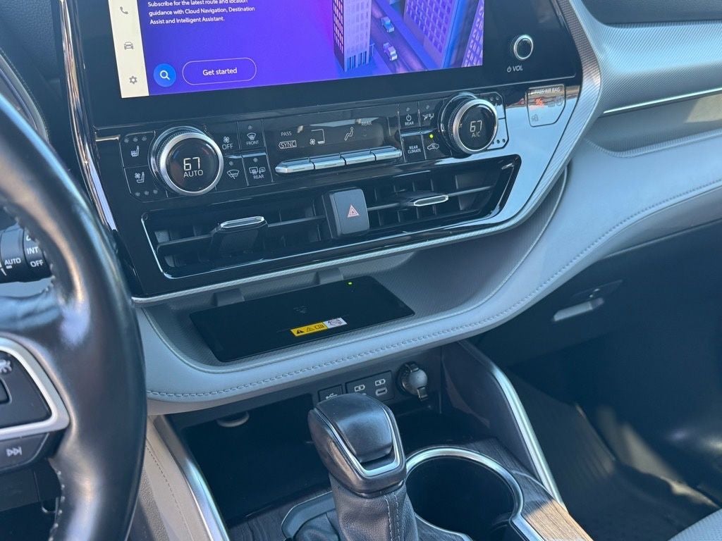 Platinum Package (Electronic Inner Mirror, High Grade LED, Panoramic Moonroof, and Panoramic View Monitor), 2.5L I4 PDI Hybrid DOHC 16V LEV3-SULEV30, 11 Speakers, 3.638 Axle Ratio, 3rd row seats: split-bench, 4-Wheel Disc Brakes, ABS brakes, Air Conditioning, All Weather Floor & Cargo Liner (TMS), Alloy wheels, AM/FM radio: SiriusXM, Apple CarPlay/Android Auto, Auto High-beam Headlights, Auto-dimming Rear-View mirror, Automatic temperature control, Brake assist, Bumpers: body-color, Delay-off headlights, Driver door bin, Driver vanity mirror, Dual front impact airbags, Dual front side impact airbags, Electronic Stability Control, Emergency communication system: Safety Connect (up to 10-year trial subscription), Exterior Parking Camera Rear, Four wheel independent suspension, Front anti-roll bar, Front Bucket Seats, Front Center Armrest, Front dual zone A/C, Front fog lights, Front reading lights, Fully automatic headlights, Garage door transmitter: HomeLink, Heads-Up Display, Heated door mirrors, Heated Front Bucket Seats, Heated front seats, Heated rear seats, Heated steering wheel, Illuminated entry, Knee airbag, Leather Seat Trim, Leather Shift Knob, Leather steering wheel, Low tire pressure warning, Memory seat, Navigation system: Drive Connect Cloud Navigation (1-year trial subscription), Occupant sensing airbag, Outside temperature display, Overhead airbag, Overhead console, Panic alarm, Passenger door bin, Passenger vanity mirror, Power door mirrors, Power driver seat, Power Liftgate, Power moonroof, Power passenger seat, Power steering, Power windows, Radio: 12.3 Toyota Audio Multimedia w/JBL Premium, Rain sensing wipers, Rear air conditioning, Rear anti-roll bar, Rear reading lights, Rear window defroster, Rear window wiper, Reclining 3rd row seat, Remote keyless entry, Security system, Speed control, Speed-sensing steering, Split folding rear seat, Spoiler, Steering wheel mounted audio controls, Telescoping steering wheel, Tilt steering wheel, Tow Hitch (TMS), Traction control, Trip computer, Turn signal indicator mirrors, Variably intermittent wipers, Ventilated front seats, and Wheels: 20 Gray Aluminum.