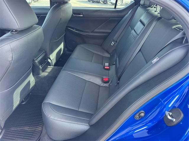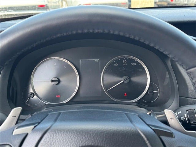 F SPORT Design Package, Black Nuluxe Black Me Artificial Leather, 10 Speakers, 4-Wheel Disc Brakes, ABS brakes, Air Conditioning, Alloy wheels, AM/FM radio: SiriusXM, Apple CarPlay/Android Auto, Auto High-beam Headlights, Auto-dimming door mirrors, Automatic temperature control, Brake assist, Bumpers: body-color, Cargo Net, CD player, Compass, Delay-off headlights, Driver door bin, Driver vanity mirror, Dual front impact airbags, Dual front side impact airbags, Electronic Stability Control, Emergency communication system: Safety Connect (3-year trial), Exterior Parking Camera Rear, Four wheel independent suspension, Front anti-roll bar, Front Bucket Seats, Front Center Armrest, Front dual zone A/C, Front fog lights, Front reading lights, Fully automatic headlights, Heated door mirrors, Heated F SPORT Seats, Heated front seats, Heated steering wheel, Illuminated entry, Key Gloves, Knee airbag, Leather Shift Knob, Leather steering wheel, Low tire pressure warning, Memory seat, Moonroof, NuLuxe Seat Trim, Occupant sensing airbag, Outside temperature display, Overhead airbag, Overhead console, Panic alarm, Passenger door bin, Passenger vanity mirror, Power door mirrors, Power driver seat, Power passenger seat, Power steering, Power windows, Premium Paint, Radio data system, Radio: Lexus Multimedia System with 8.0 Touchscreen Display, Rear anti-roll bar, Rear reading lights, Rear side impact airbag, Rear window defroster, Remote keyless entry, Security system, Speed control, Speed-sensing steering, Speed-Sensitive Wipers, Split folding rear seat, Spoiler, Steering wheel memory, Steering wheel mounted audio controls, Tachometer, Telescoping steering wheel, Tilt steering wheel, Traction control, Trip computer, Turn signal indicator mirrors, Variably intermittent wipers, and Wheels: 19 Split-5-Spoke Alloy with Dark Metallic Finish.