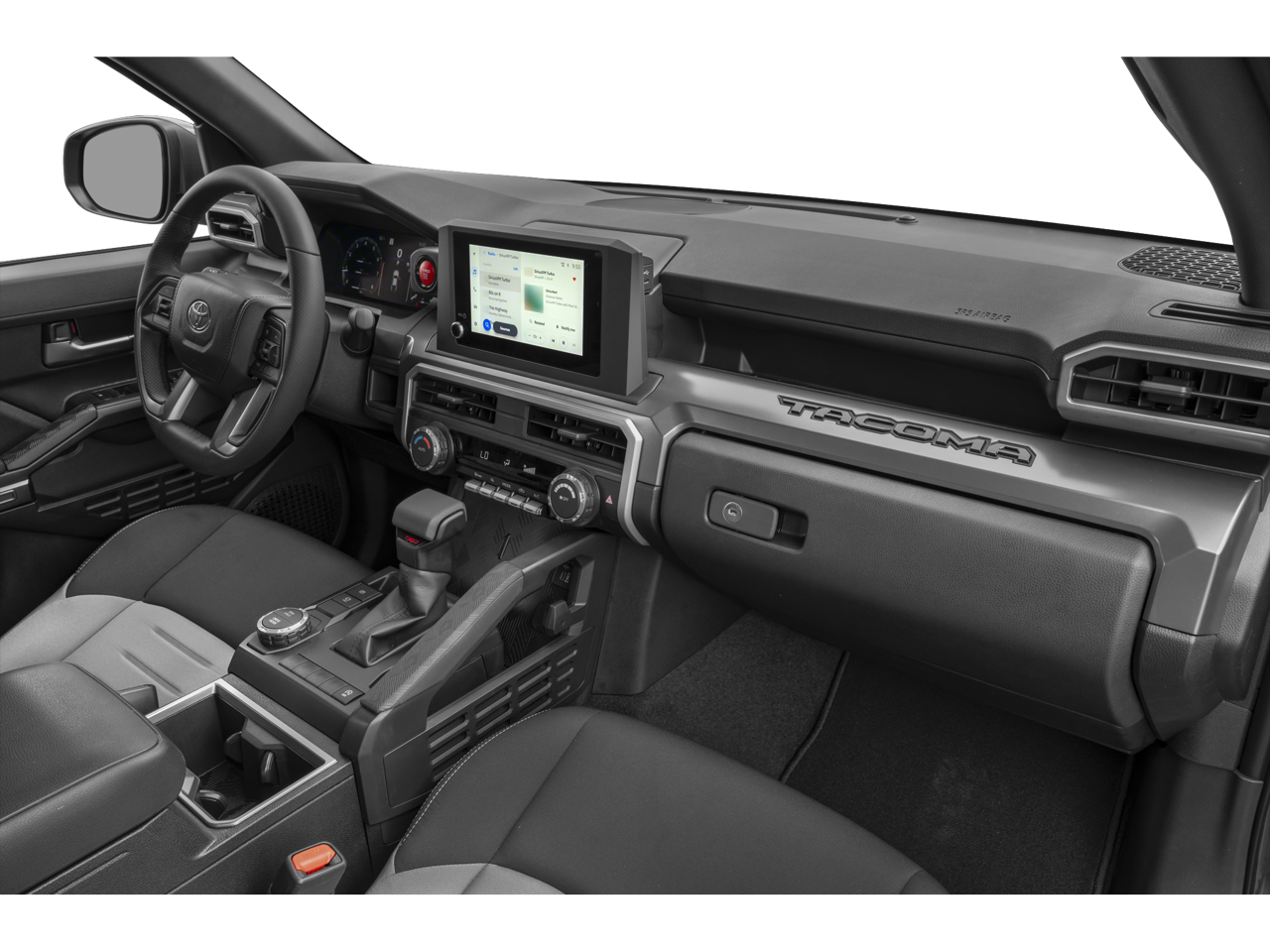 Toyota Certified, 4WD, 3.583 Axle Ratio, 4-Wheel Disc Brakes, 6 Speakers, ABS brakes, Air Conditioning, All Weather Floor Liners (TMS), Alloy wheels, AM/FM radio: SiriusXM, Anti-whiplash front head restraints, Apple CarPlay/Android Auto, Auto High-beam Headlights, Auto-dimming Rear-View mirror, Automatic temperature control, Black Badge Overlay (TMS), Black Chrome Exhaust Tip (TMS), Black Tailgate Insert (TMS), Body Side Molding (TMS), Brake assist, Bumpers: body-color, Door Edge Guard (TMS), Driver door bin, Driver vanity mirror, Dual front impact airbags, Dual front side impact airbags, Electronic Stability Control, Emergency communication system: Safety Connect (1-year trial), Exterior Parking Camera Rear, Fabric Seat Trim, Four wheel independent suspension, Front anti-roll bar, Front Bucket Seats, Front Center Armrest, Front fog lights, Front reading lights, Fully automatic headlights, Heated door mirrors, Illuminated entry, JBL Premium Audio, Knee airbag, Leather Shift Knob, Leather steering wheel, Low tire pressure warning, Mudguards (TMS), Occupant sensing airbag, Outside temperature display, Overhead airbag, Overhead console, Panic alarm, Passenger door bin, Passenger vanity mirror, Power door mirrors, Power steering, Power windows, Predator Step (TMS), Radio: 8 Toyota Audio Multimedia, Rear step bumper, Rear window defroster, Remote keyless entry, Security system, SofTex Seat Trim, Speed control, Speed-sensing steering, Split folding rear seat, Spray-On Bed Liner (TMS), Steering wheel mounted audio controls, Tachometer, Telescoping steering wheel, Tilt steering wheel, Traction control, Trip computer, Turn signal indicator mirrors, Variably intermittent wipers, Wheels: 18 TRD Black (TMS) (PPO), and Wheels: 18 TRD Sport Alloy.